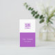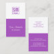 Conception minimaliste avec un design mi-moitié-moitié violet et blanc. Un petit carré contient vos initiales en petites lettres et en dessous, le nom de votre entreprise ou de votre profession en petits caractères. Un design générique pour la plupart des cartes personnelles ou de nom d'entreprise.