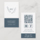 Elégant Monogramme Wreath Neutral Ardoise Gris Carte de visite vertical avec Slogan... L'avant de notre unique carte de visite couleur ardoise est ornée d'une élégante couronne botanique bordant vos deux initiales monographiques en gris ardoise sur un arrière - plan blanc. Votre nom et votre titre (ou nom de la société) apparaissent en encre blanche sur un rectangle d'ardoise neutre bordant le bas du carte de visite, donnant une structure autoritaire pour équilibrer la délicate couronne feuillue. Au verso de la carte se trouvent votre numéro de téléphone, les coordonnées des médias sociaux, l'adresse du site et le code QR qui vous donne des liens vers des informations supplémentaires. La section gris ardoise en bas contient votre devise d'entreprise ou slogan. L'exemple de texte montre actuellement "Toujours prendre la route haute" dans la typographie de script blanc. Si vous préférez, vous pouvez supprimer le texte de la devise. Tout le texte et le code QR peuvent être facilement révisés sur le modèle de personnalisation.