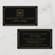 Un carte de visite moderne et tendance qui peut être utilisé pour n'importe quelle industrie. Le carte de visite est doté d'un monogramme personnalisé, d'une bordure dorée art déco, d'un arrière - plan noir et d'une disposition propre pour présenter votre nom/nom d'entreprise. Modifiez le style de police, déplacez du texte, etc. en cliquant sur le bouton Customiser.