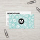 Carte De Visite Monogramme central - Design de fleurs - Lt Aqua