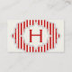 Carte De Visite Monogramme dans un cadre à rayures rouges, blanche