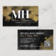 Chic peintre de maquillage tendance Carte de visite de Monogramme d'or noir. Vous pouvez le changer à n'importe quelle entreprise que vous voulez : maquilleur, spécialiste du fouet, coiffeur, ou même quelque chose comme le marketing, le conseil et plus encore! Avec en toile de fond un arrière - plan noir avec une fausse aquarelle or ou de l'encre d'alcool (une touche de marbre), associé à une typographie blanche et audacieuse et une police de caractères élégante pour les détails. L'arrière comprend de l'espace pour un code QR afin que les clients puissent se connecter rapidement à votre site Web. Un look tendance et chic qui reste professionnel et élégant.