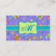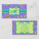 Faites une impression avec ce carte de visite monogramme élégant. De beaux papillons tourbillonnants volent vertigineusement sur ce coloré carte de visite personnalisé avec votre initiale monogramme. Si vous préférez votre nom au lieu de l'initiale, supprimez l'emblème et changez le monogramme en votre nom ou autre mot sur la barre turquoise turquoise qui peut être agrandie. Les belles couleurs de lavande, rose fuchsia, bleu turquoise, orange et jaune créent une palette de couleurs sur un lavande périwinkle ou arrière - plan violet. Les éléments de conception d'icônes à motifs comprennent également des fleurs jaunes, turquoise, lavande et rose fuchsia et des cercles fantaisistes. Customisez pour vous-même ou pour un cadeau. Les papillons sont toujours populaires et bonne chance ainsi que tendance, contemporain et élégant avec grand charme. Entièrement personnalisable pour ajouter votre monogramme ou un nom ou un autre mot spécial. Coordonner avec d'autres produits de la même couleur dans ce magasin. Plusieurs choix de couleurs pour les couleurs arrière - plans sont également disponibles dans ce magasin.
