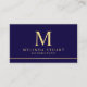Carte De Visite Monogramme élégant bleu et or de la marine