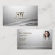Carte De Visite Monogramme et photo de déco courbée en argent