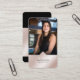 Un design simple et élégant monogramme féminin avec votre photo et silhouette de maison, avec police de script décontracté et police de bloc moderne sur l'arrière - plan rose pastel. Vous pouvez ajouter le logo de votre courtier à l'arrière. Design élégant et chic pour votre entreprise immobilière, d'assurance ou d'hypothèque