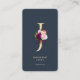 Carte De Visite Monogramme moderne J Floral Bleu foncé Or