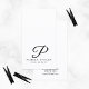 Un design élégant en noir et blanc avec un monogramme en noir élégant avec des informations professionnelles en noir style de police professionnelle sur arrière - plan blanc. Idéal pour un maquilleur, designer, styliste, consultant, agent immobilier et de nombreuses autres professions.