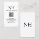 Cartes de visite QR Code moderne avec un design noir et blanc simple et minimal avec votre monogramme en caractères gras avec votre nom en haut. Voici vos coordonnées.