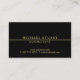 Un design élégant de luxe noir et or avec monogramme en or style police professionnelle avec bordure en or sur le devant et informations d'affaires en or style police professionnelle sur le côté arrière.