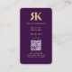 Moderne Realtor Immobilier Monogramme R K Dark Purple Carte de visite est un must pour tout courtier qui cherche à faire une déclaration. Avec son texte en or clair et son écriture élégante pour votre nom, ainsi qu'un monogramme plus foncé pour vos initiales, cette carte est à la fois minimaliste et exclusive. Le code QR fournit un moyen simple pour les clients d'accéder à votre lien professionnel et d'en savoir plus sur les annonces immobilières et les visites virtuelles. Si vous avez besoin d'une personnalisation, n'hésitez pas à me contacter via DM.
