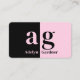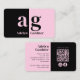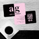 Carte De Visite Monogramme rose noir minimum QR Code médias sociau