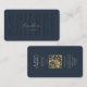 Monogramme scientifique moderne carte de visite en or bleu foncé avec code QR