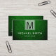 Carte De Visite Monogramme texturé en cuir vert foncé