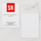 Carte De Visite monogramme vertical blanc rayé rouge unique