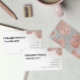 Carte de visite, taille : Carré : 6,4 cm x 6,4 cm, papier : Signature UV mate, coins : Carré
