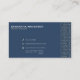 Motif bleu + or géométrique sans couture | Carte de visite standard Ce motif géométrique moderne et élégant en or et blanc sur carte de visite arrière - plan bleu est parfait pour quiconque veut donner une première impression unique et distinctive! Modifiez la carte avec votre nom, titre et détails professionnels pour une touche personnelle. Personnalisez cette carte pour en faire votre propre carte en cliquant sur le bouton "personnaliser" pour modifier votre nom, titre de poste et détails d'affaires sur le devant et le dos de la carte. Vous pouvez également customiser la taille de la police, les couleurs de police et l'espacement sur la carte en cliquant sur "cliquer pour customiser plus loin". Mélangez et appariez avec d'autres objets de la collection Blue + Gold Geometry dans la boutique pour un look cohésif !