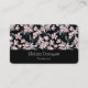 Cartes de visite avec un élégant motif fait avec une aquarelle illustration de fleurs roses avec des feuilles bleu-gris et des tiges avec un arrière - plan noir classe.