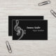 Un design carte de visite simple de musique noir/blanc - treble blanc et clés de basse contre un arrière - plan noir texturé. Le texte avant affiche Nom et Titre, tandis que le texte arrière affiche Téléphone, Mobile, E-mail et Adresse Web. Tous les textes sont personnalisables.