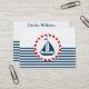 Design nautique avec décoration de voilier en forme ronde sur bleu et blanc rayé arrière - plan