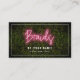 Pink neon inspiré script "Braids" sur un arrière - plan de boxwood avec texte et garniture blancs.