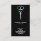 Un luxueux Neon Unicorn Holographic cheveux styliste carte de visite avec ciseaux holographiques et la typographie moderne de luxe, idéal pour coiffeur, salon de coiffure, extensions cheveux, perruques.... Les parties métallisées sont simulées par le design. Il n'y aura pas de métal sur ce produit.