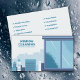 Un carte de visite pour les services professionnels de nettoyage de fenêtres. Il est illustré par une fenêtre avec des pièces propres et sales et un arrière - plan avec une ligne d'horizon de la ville comprenant des bâtiments. A l'arrière il y a une liste de services avec contact complet!