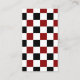 Cette carte de visite est décorée d'à damiers noir rouge blanc, conçus par les Deluxeforms.