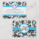 Carte De Visite Noir & Blanc Damask Bright Aqua Trim avec points