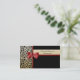 Un noir élégant et à la mode et un carte de visite intérieur de mode d'empreinte de léopard d'or avec un ruban rouge girly attaché dans un arc mignon. Annoncez vos services de décoration intérieurs de conseiller avec ce motif animal de concepteur. Image imprimée d'appartement, ruban non réel.
