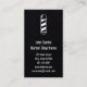 Un poteau de coiffeur est au dessus. Sous le poteau de coiffeur sont les champs pour votre texte, tel que votre nom, raison sociale, adresse, numéro de téléphone, et toute autre information de contact. Le texte est blanc et l'arrière - plan est noir.