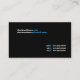 Carte de visite noir élégant avec des points culminants bleus. Le regard concis évoque la professionnalisme et la créativité. Excellent pour différents professionnels dans les affaires, aussi bien qu'industries créatives, qui préfèrent l'élégance et le style simples dans les matériel promotionnels. Papier de la meilleure qualité ou de luxe recommandé pour le meilleurs regard et sensation.