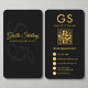 Carte de visite professionnel de notaire mobile noir et or avec un monogramme audacieux, une typographie élégante et un code QR moderne. Parfait pour les notaires mobiles, les agents de signature de prêts et les professionnels du droit qui veulent une carte de marque digne de confiance, élégante et d'inspiration luxe.