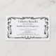 Rétro art déco moderne, frontière de rouleau, carte de visite simple. La frontière de noir croise beaucoup de styles en tant qu'une conception vintage mise à jour - rétro, moderne, ou classique. Cette carte générique élégante adaptera à beaucoup d'entreprises. Une frontière ornementale de conception de défilement noir sur l'arrière - plan blanc. PERSONNALISER : Ajoutez juste votre information dans les espaces fournis. Personnalisez ou supprimez comme nécessaire comprenant la ligne de démarcation à l'avant ou à la frontière arrière.