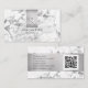 Personnalisez votre nom et votre occupation en noir et monogramme en blanc sur boîte en argent sur marbre blanc et gris avec code QR et les coordonnées sur le dos.