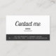 Un modèle moderne de carte de visite en noir et blanc avec une police en gras utilisant un style manuscrit. L'avant de ce design carte de visite professionnel a un arrière - plan noir et comprend votre nom et votre profession audacieux. En utilisant des éléments arrière - plans noirs et blancs à l'arrière pour montrer votre poignée de médias sociaux ainsi que toutes vos autres coordonnées. Ce carte de visite de nom audacieux est clairement structuré pour assurer une lisibilité facile. Idéal pour les petites entreprises, les entrepreneurs, les consultants ou les auteurs indépendants.