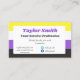 Simple business cards with the non-binary pride motive, enby pride flag in the background, and a heart with the non-binary pride colors in the front; with customizable social media icons where you can add your username for Facebook and Twitter