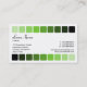 Un élégant modèle moderne pour carte de visite/profil. Haut et bas bordé d'une rangée de neuf carrés arrondis passant d'un vert clair au noir. Détails de l'entreprise sur l'avant avec nom et coordonnées sur l'arrière.