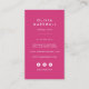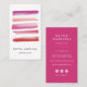 Les cartes de visite d'aquarelle chic au format vertical unique portent votre nom ou nom de société sous des nuances de rouge à lèvres colorées dans des aquarelles. Ajoutez vos coordonnées complètes à l'arrière en blanc sur magenta. Comprend trois icônes de médias sociaux et un champ de modèle pour votre nom d'utilisateur ou poignée.