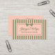 Retro striped business card in blush pink and olive green with a coquette little bow. The feminine look makes the business card perfect for beauticians, boutique owners, event planners, interior designers, makeup artists, hair stylists, jewelry makers, and more. Personalize with your name or business name in a pretty script.