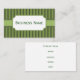 Des rayures d'olive et de vert foncé ornent ce carte de visite de style rétro. Customisez ce carte de visite pour répondre à vos besoins. Ajoutez ou supprimez des informations, changez le style de police, la taille de police, etc...Le design est de l'art original. Utilisez ce carte de visite élégant pour une auberge, Bed and Breakfast, B&B, hôtel, restaurant, spa, salon, salon de coiffure, fleuriste, soin de la pelouse, entreprise paysagiste, petite entreprise, décoration de maison, etc...