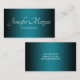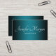 L'image présente un noir et turquoise ombre ou dégradé. Nom ou entreprise dans une police de calligraphie moderne glamour, bien que vous pouvez changer ce style. Le titre de l'emploi et les informations sur le contrat créés à l'aide du verrou Casquette ... tous les casquettes. Un espacement de caractères est appliqué et personnalisable. Pour les entrepreneurs en ligne, customisez et ajoutez plus ou moins que le numéro de téléphone et les médias sociaux et/ou le site Web. Pour les professionnels, il y a de la place pour une adresse physique et d'autres informations.