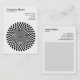Un modèle de carte de visite avec un motif Op Art attrayant sur le devant. Nom de l'entreprise, type d'entreprise et adresse sur l'avant avec nom, titre de l'emploi, téléphonie, adresses Web et e-mail sur l'arrière, avec une disposition similaire, sauf qu'il y a une zone gris pâle carré destinée comme zone utile pour écrire des notes au lieu du motif avant. Cette carte peut également être customisée.