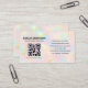 Elevate your professional image with this minimalist opal QR code business card. Featuring a soft iridescent background and clean, modern layout, this design blends elegance and functionality. The subtle pastel shimmer adds refinement, while the QR code provides quick access to your website, booking page, or digital contact info. Perfect for entrepreneurs, consultants, creatives, and stylists seeking a polished, tech-forward look. Fully customizable and print-ready.