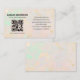 Make a refined first impression with this minimalist opal business card featuring a modern QR code for effortless digital contact sharing. The soft iridescent opal background with subtle gold accents adds a professional yet luxurious touch, while the clean typography and simple layout keep your details crisp and easy to read. Perfect for consultants, creatives, or business professionals who appreciate understated elegance and smart design.