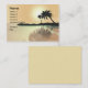 L'or et le jaune ont coloré le carte de visite avec une silhouette d'une île et des palmiers.