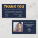 Carte De Visite Orange bleu script photo logo commander merci