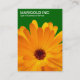Un design carte de visite avec un joli design marigold orange. Détails de l'entreprise sur le devant avec nom, titre et autres coordonnées sur le dos avec un motif marigold plus petit