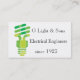 Un double carte de visite dégrossi comportant des graphiques d'une ampoule réglés, en éditent et tout les texte pour votre propre information, grands pour des électriciens, des inventeurs ou des ingénieurs. Veuillez me laisser tomber une ligne si vous voudriez voir ce thème sur n'importe quels autres articles.