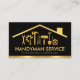 Une couverture entièrement noire présente un toit en faux or et des outils manuels. Près de la base de la carte est le nom d'entreprise et une option de slogan pour faire connaître vos services. ; Vous pouvez changer les remarques de légende en slogan pour qu'elles correspondent à vos besoins de service. Overleaf, un logo doré domiciliaire que vous pouvez utiliser est en haut suivi de votre nom prestigieux, les coordonnées et une option de slogan pour faire connaître vos services. Toutes les lettres sont en faux or. Un grand design pour les thèmes du bricolage, du bâtiment et de la construction. #handyman #construction #chantier de construction #chantier de construction #homerepair #entrepreneur